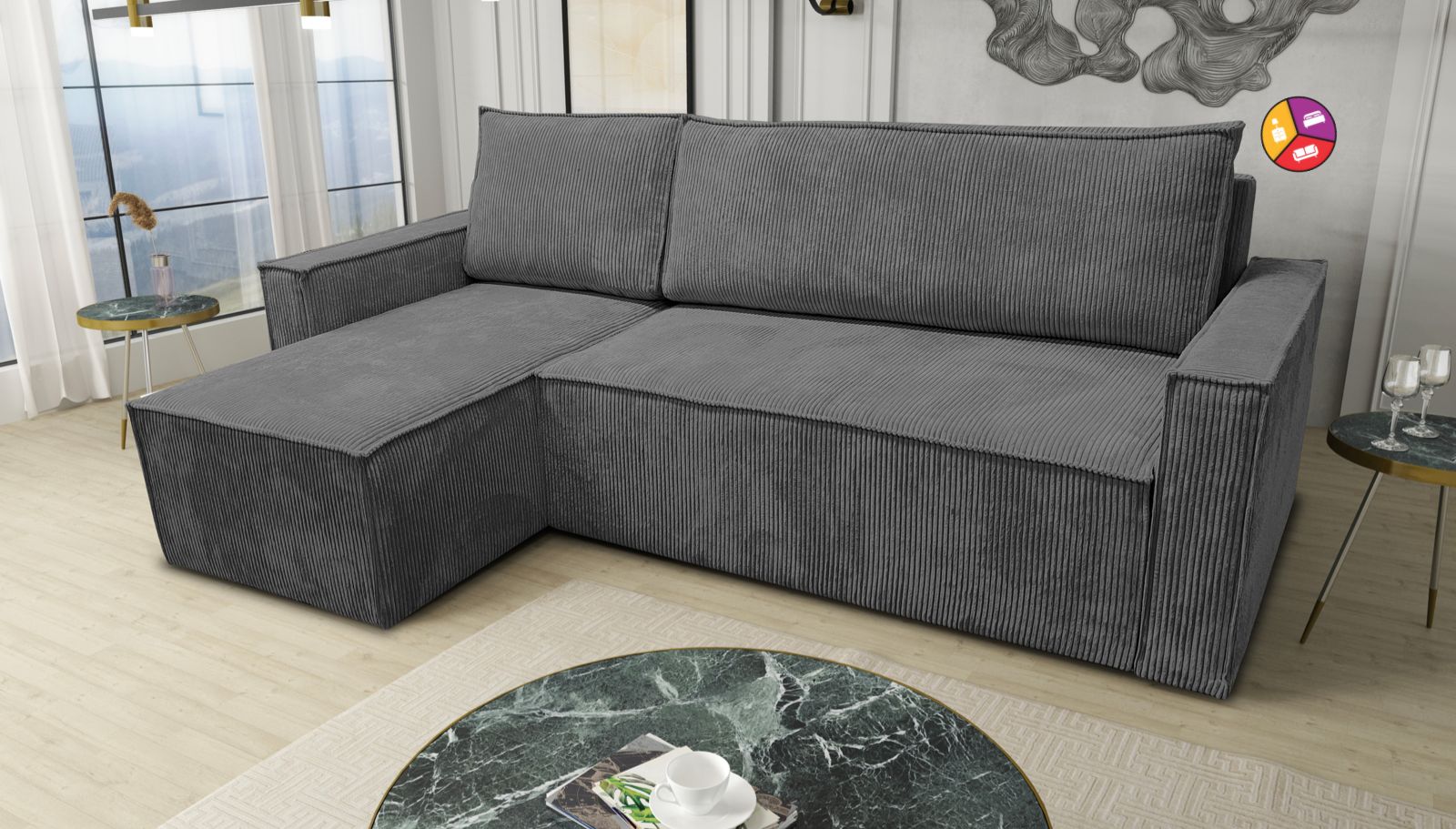 Le canapé Paris convertible en angle réversible en côtelé gris deviendra rapidement la pièce maîtresse de votre salon, ajoutant une touche de modernité et de polyvalence à votre espace de vie. Découvrez le luxe du confort et de la fonctionnalité avec ce canapé exceptionnel.