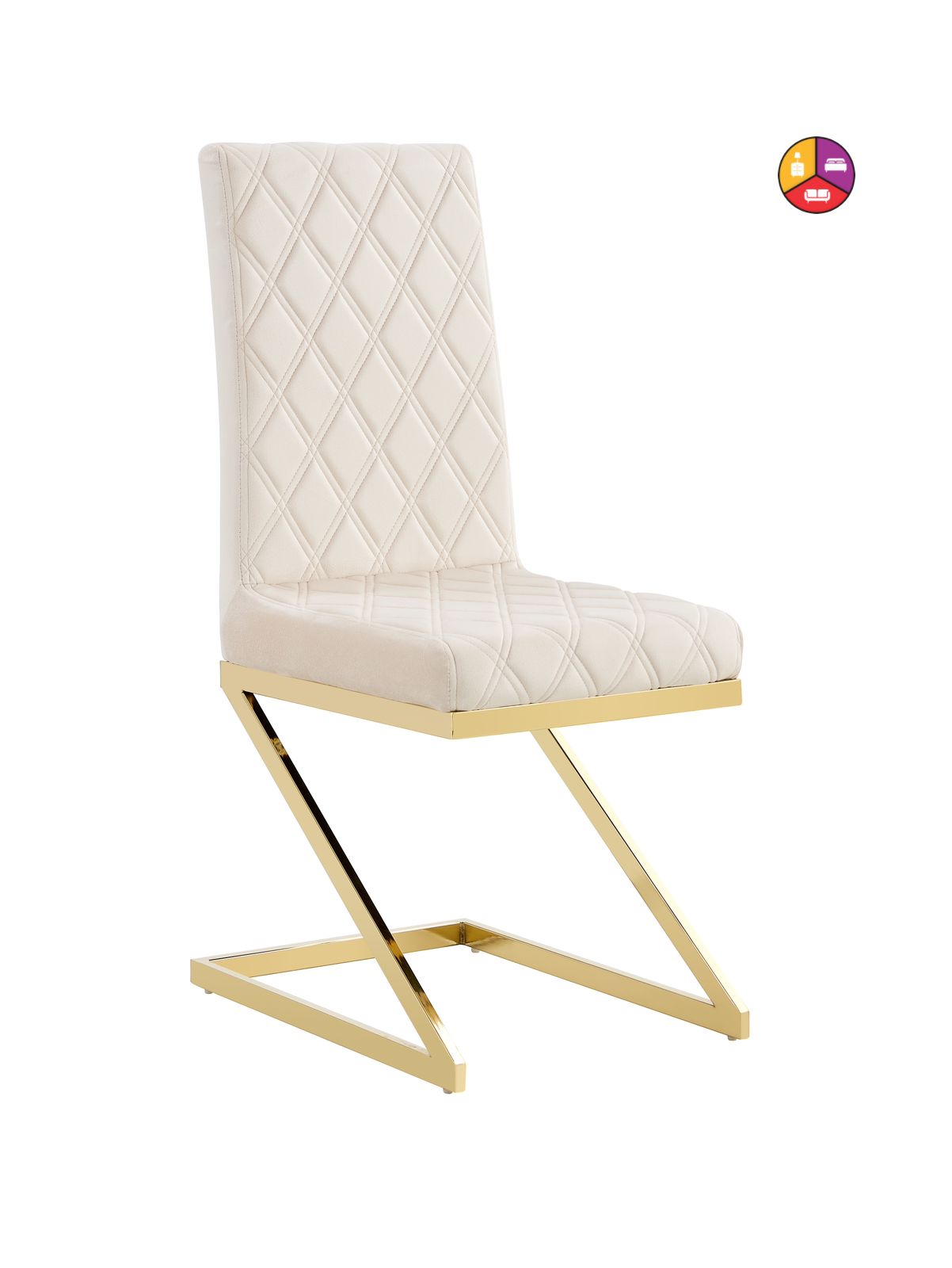 - Chaise Cocomat matelassée avec accents dorés.