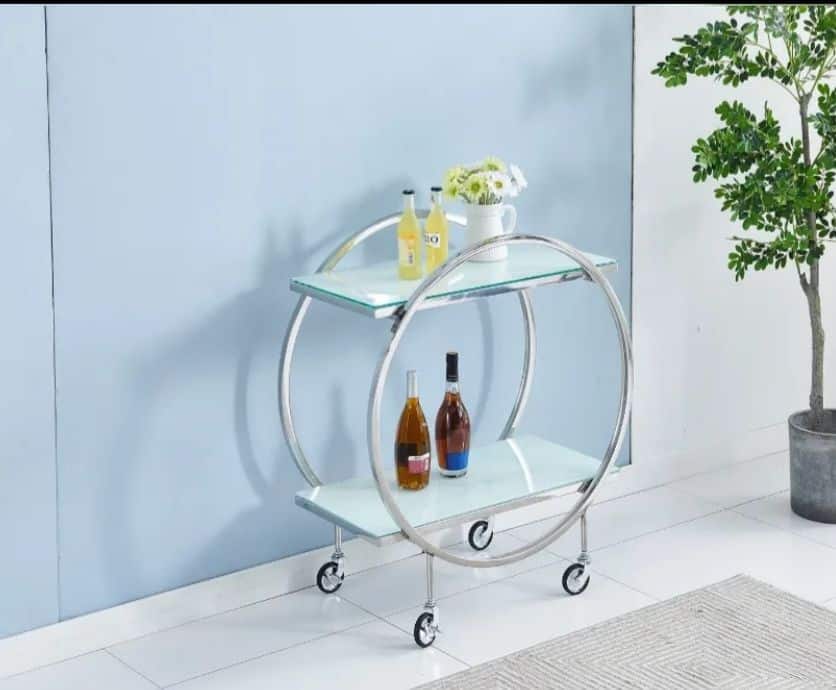 Chariot argent marbre blanc, l’essence du raffinement, alliant marbre précieux et argent brillant pour un luxe incomparable.