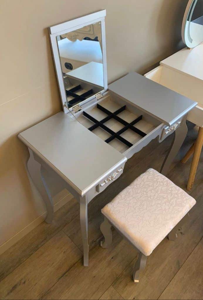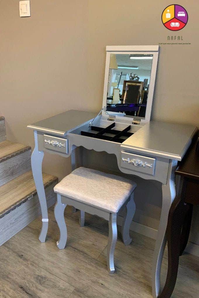 coiffeuse gris avec tabouret
