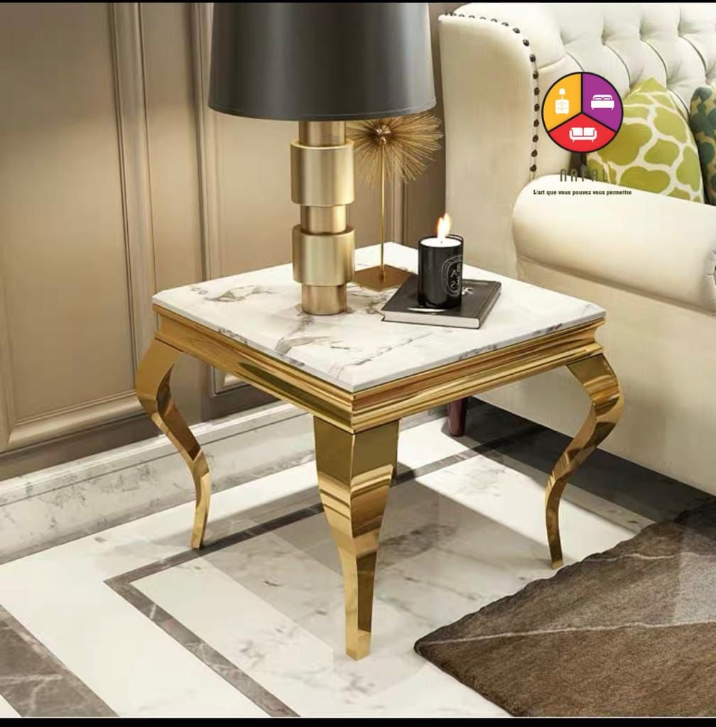GUERIDON BAROQUE GOLD MARBRE BLANC