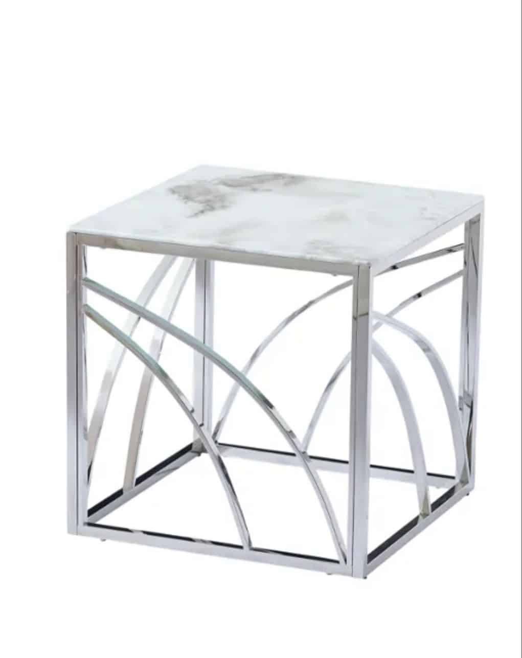 Le guéridon Géo en marbre blanc argent, un bijou de design alliant élégance, raffinement et éclat dans votre espace.