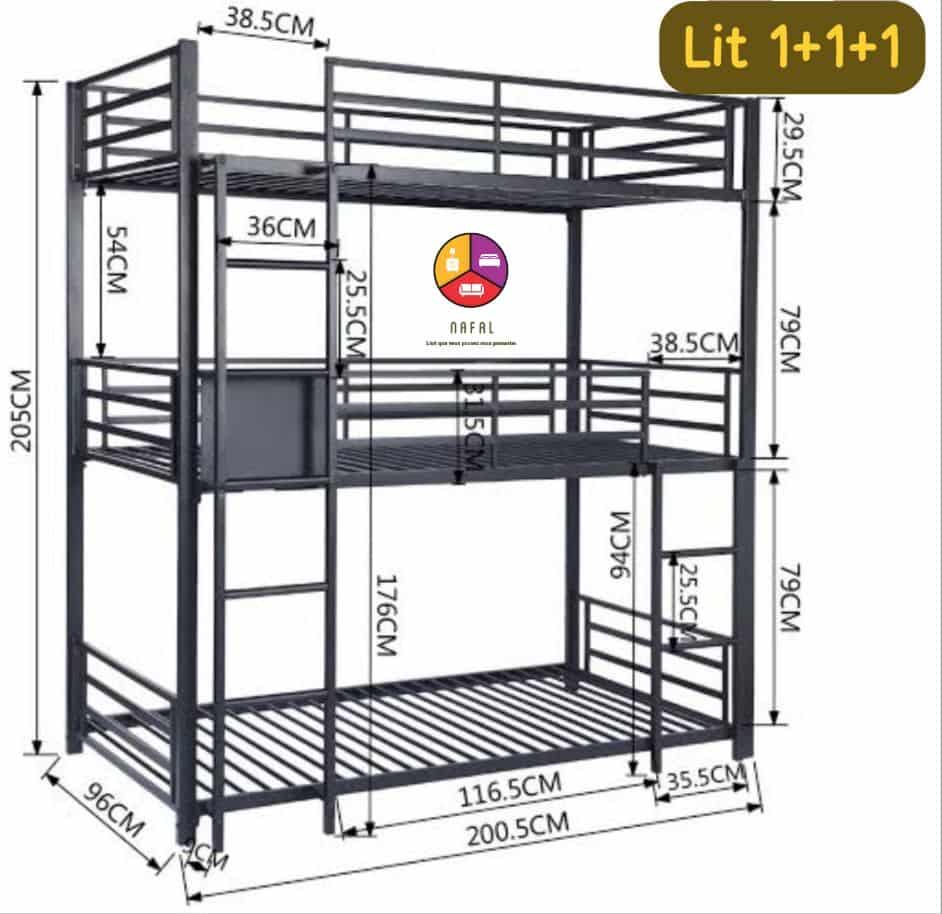 Que ce soit pour les enfants, les adolescents ou les adultes, le lit superposé “Trio” en métal gris à 3 places offre la solution idéale pour optimiser l’espace tout en maintenant une esthétique moderne. Créez un environnement fonctionnel et élégant dans votre chambre grâce à ce lit superposé polyvalent.