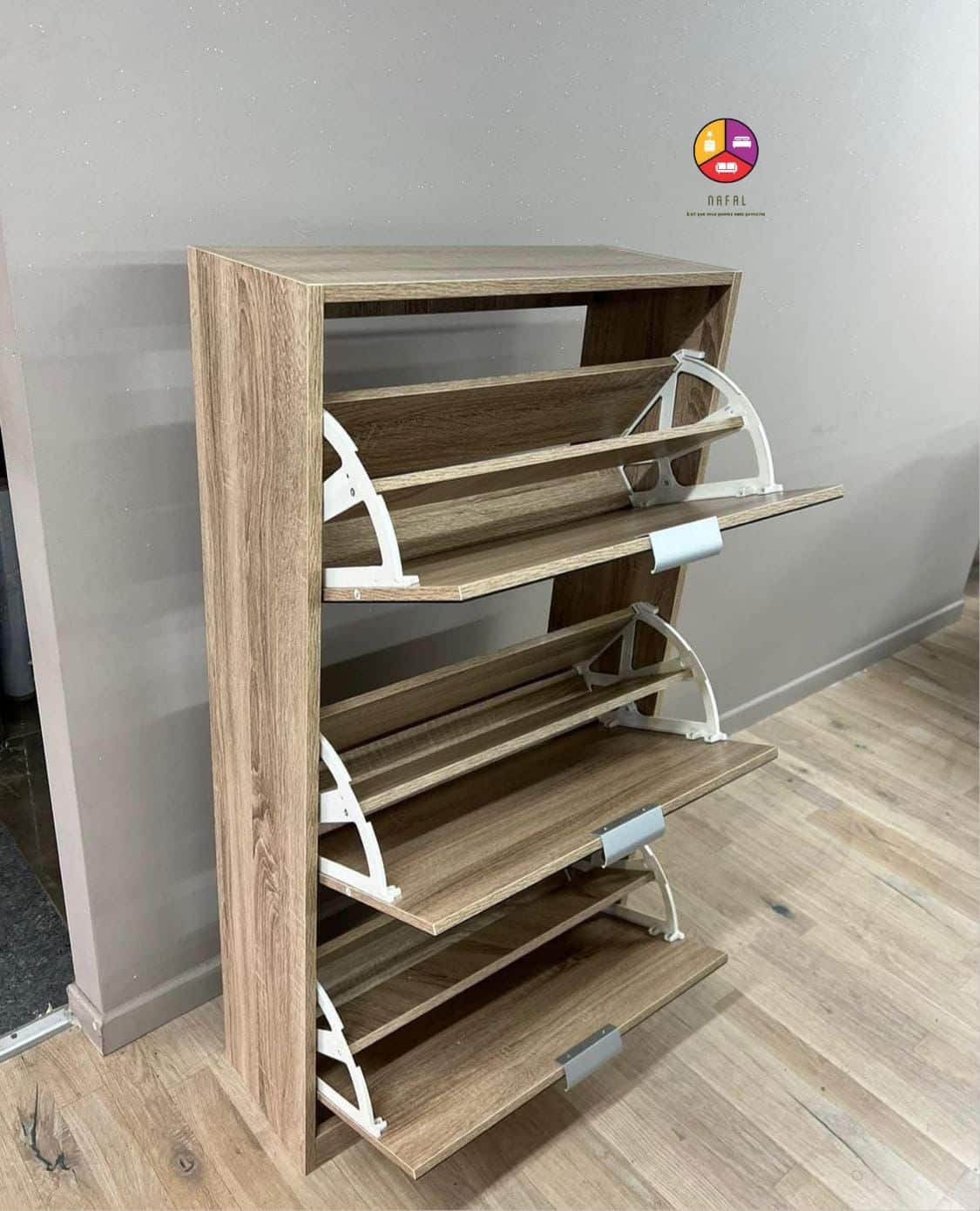 Que ce soit dans l’entrée, le dressing ou la chambre, ce meuble à chaussures en bois avec miroir devient une pièce maîtresse d’élégance naturelle et de fonctionnalité dans votre maison. Investissez dans cette pièce extraordinaire pour apporter une touche de luxe inimitable à votre quotidien tout en organisant vos chaussures avec style.
