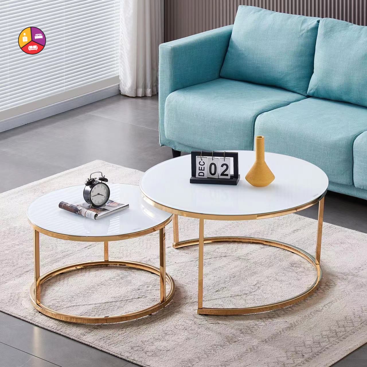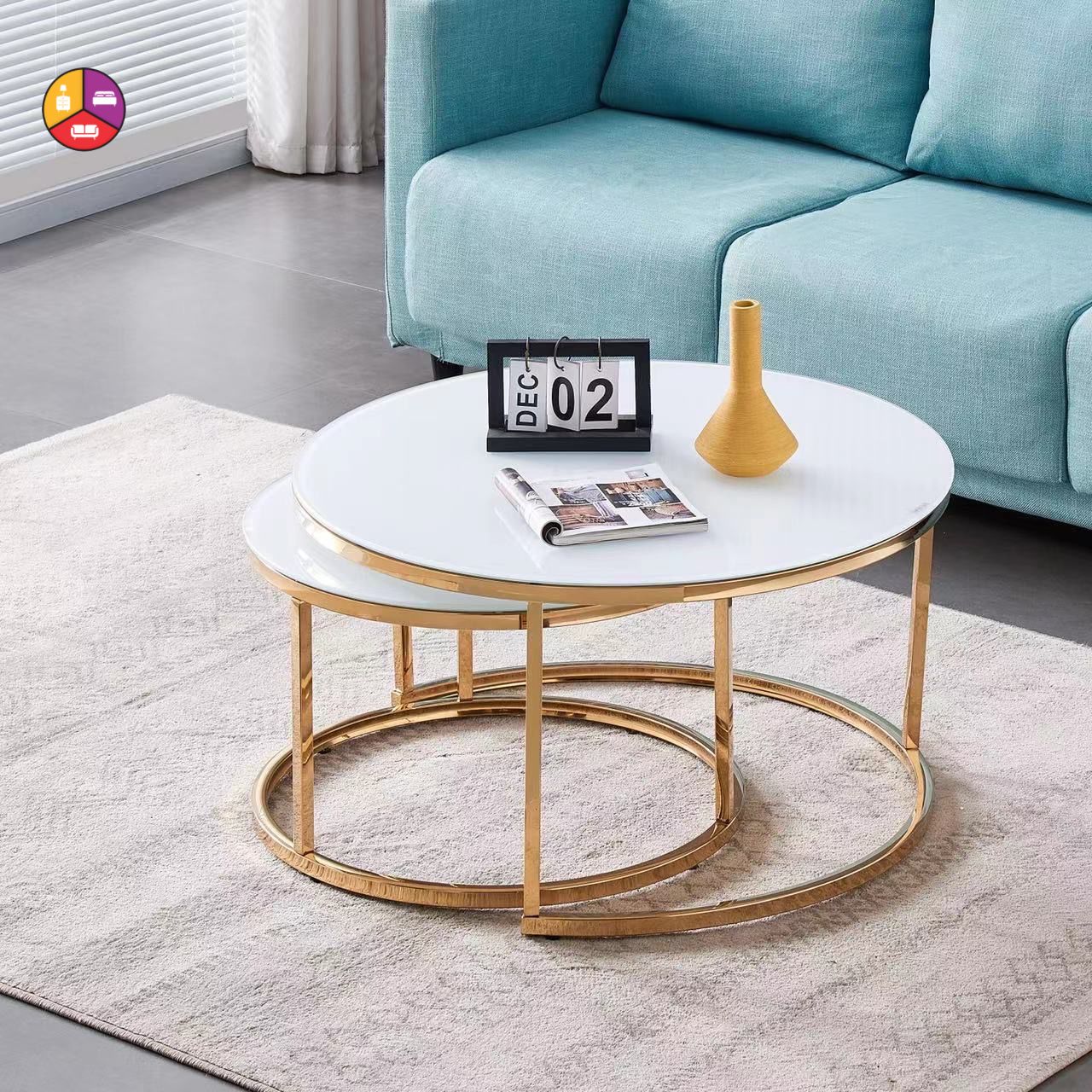 Table basse gigogne gold avec plateau en verre ultra blanc. Élégance moderne et polyvalence pour sublimer votre espace de vie.