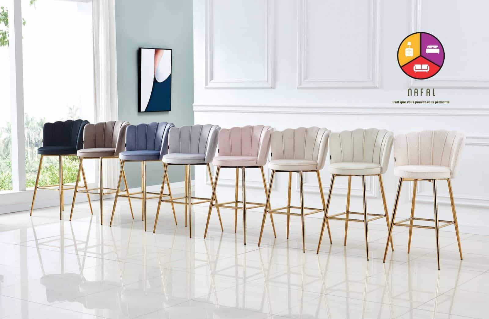 Le tabouret de bar Nymphea en or et velours, avec une hauteur de 65 cm, incarne l’opulence du design et le confort absolu pour votre espace bar.
